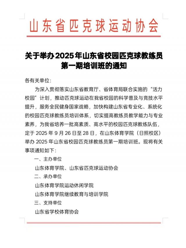 关于举办2025年山东省校园匹克球教练员第...